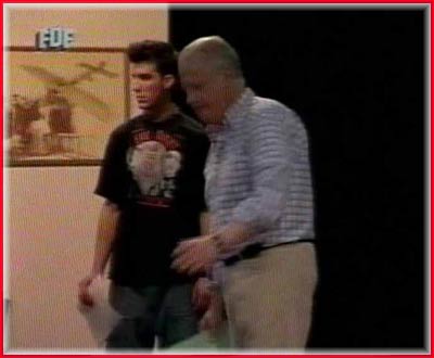 Javier Sardá mirando a la audiencia y presentándoles el DVD de "Evil Night". - TV: Julián Lara estuvo en el programa "Lo + Plus" de Canal+, el 18 de Junio de 2003. Estuvo como espectador, pero durante todo el programa permaneció tras el entrevistado, que aquel día era Lorenzo Milá, con lo que su camiseta de "Evil Night" estuvo casi una hora en antena provocando una publicidad total. Claro que ese no fue el único motivo de Julián para ir al programa, antes de que comenzara le hizo entrega de sendos DVD´s y camisetas a Ramón Arangüena, Fernando Schwartz, Javier Coronas y Ana García Siñeriz, así como a gran parte del equipo técnico del programa.